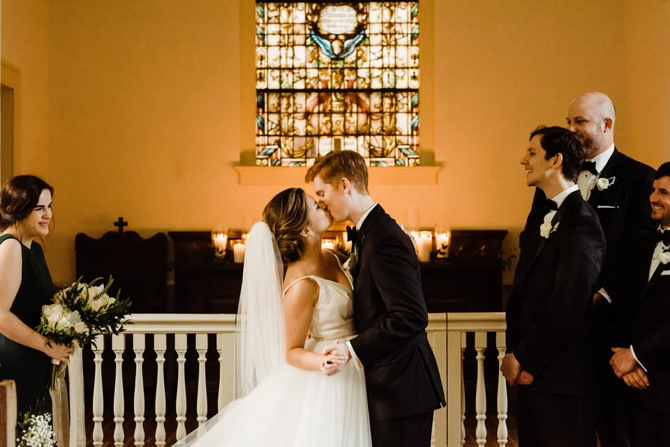 Bethesda is a small chapel that meant so much to the couple because Brett’s parents actually got married here! People gathered on the same wooden pews that were there decades before when his parents said “I do.” A friend officiated for Brett + Susan, which always makes for lots of laughs. The couple then exchanged hand-written vows together that were incredible!